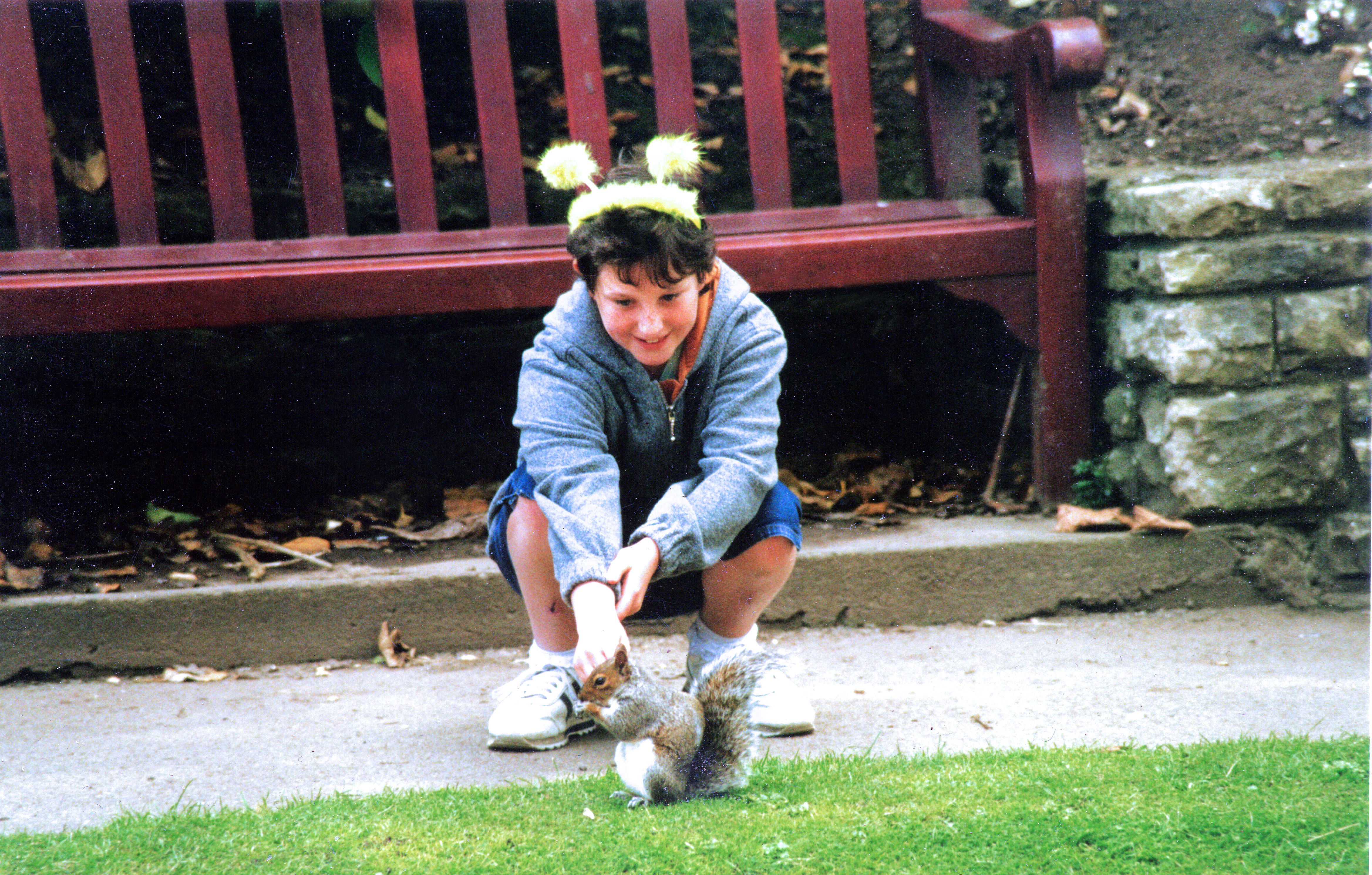 Squirrel: Kelly feeding a squirrel at Scarborough